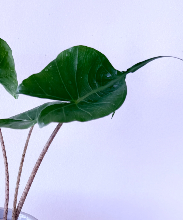 La Alocasia Stingray es una de esas plantas que parecen tener vida propia. Sus hojas, con forma de raya marina, terminan en una punta elegante y curva que imita la cola del pez que le da nombre. Es exótica, escultórica y profundamente viva: una planta que transforma cualquier rincón en un pequeño paisaje tropical.