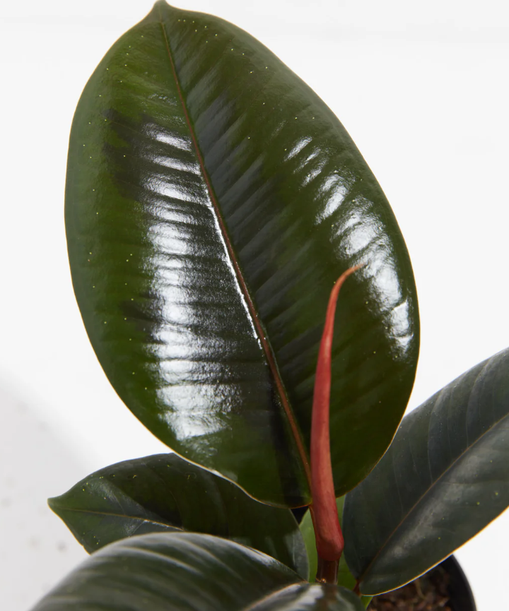 El Ficus Elástica Burgundy es una de las variedades más sofisticadas del género Ficus. Se distingue por sus hojas grandes, brillantes y de un profundo tono verde oscuro con reflejos burdeos, que aportan un aire elegante y contemporáneo a cualquier espacio.