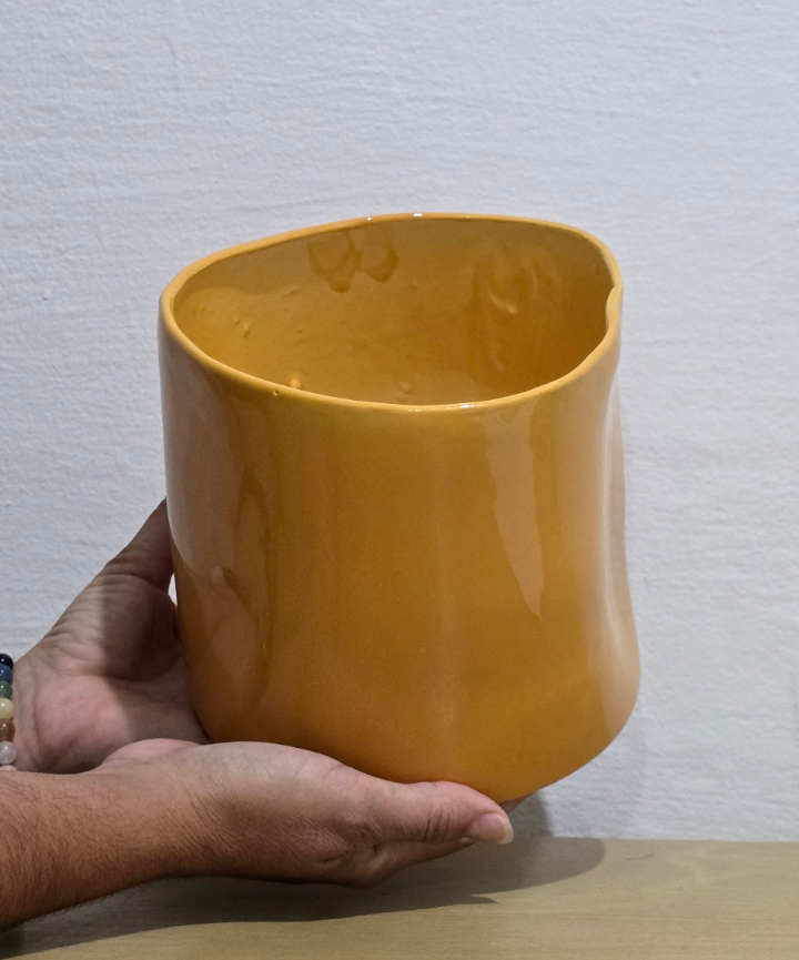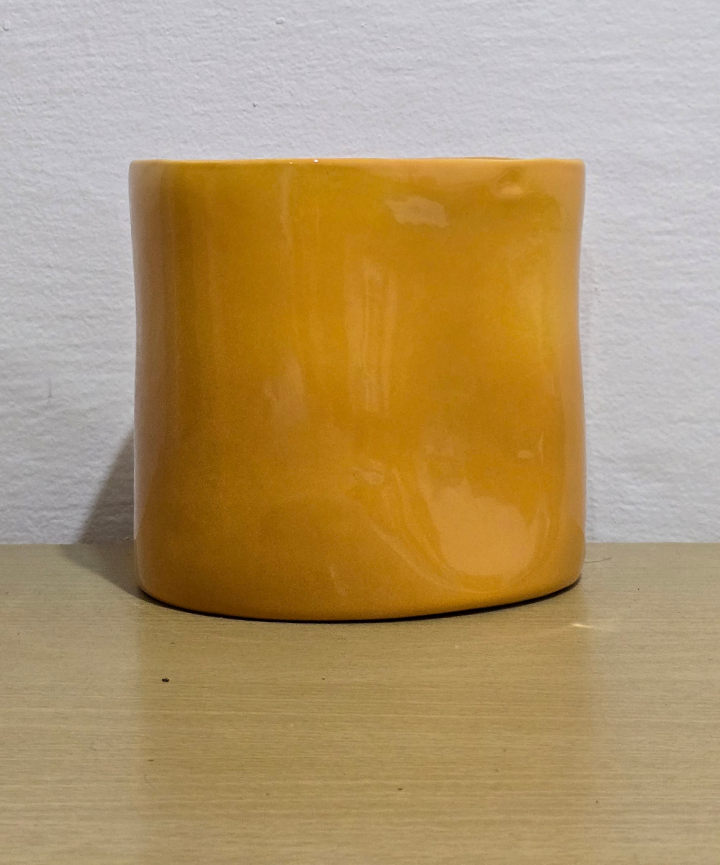 Olearia es pura luz. Su silueta abollada, fluida e imperfecta parece haber sido modelada por el viento o el tiempo. El color amarillo mostaza irradia calidez y alegría, como un pequeño sol en formato de maceta. Ideal para plantas con presencia, Olearia es una pieza que no necesita simetría para brillar. Su forma libre honra la belleza de lo no lineal, como las hojas que crecen hacia donde quieren.