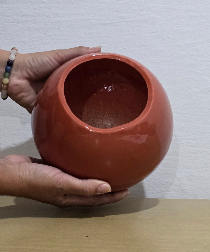 Orbella es una esfera perfecta, nacida para contener vida. Sus colores vibrantes recuerdan a frutas tropicales, flores en plena floración o tierras lejanas donde el sol acaricia la arcilla. Su superficie brillante refleja la luz como si cada tono estuviera despierto. Orbella es alegría, abundancia y celebración. Una maceta que transforma cualquier rincón en un pequeño universo botánico.