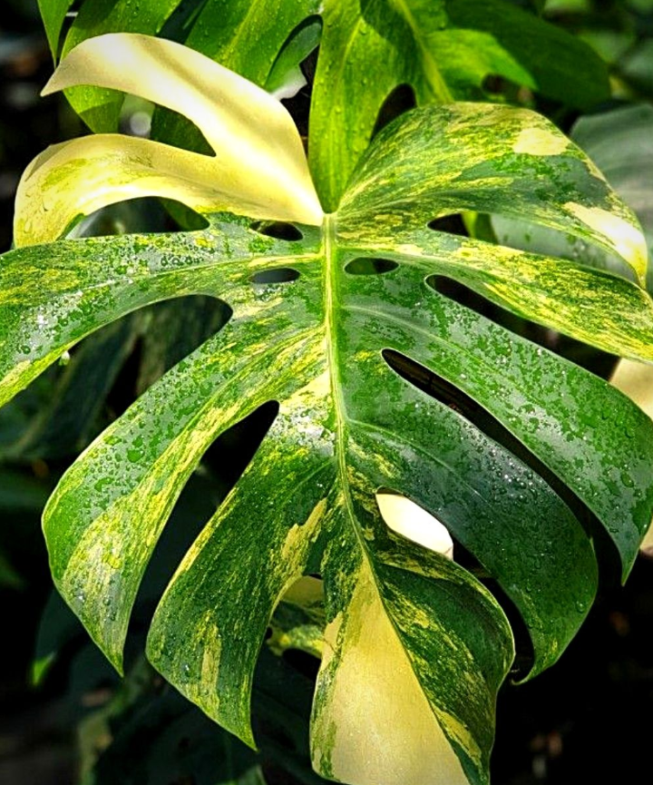 La Monstera Aurea crece lentamente y cada nueva hoja puede mostrar diferentes proporciones de verde y dorado. Esa imprevisibilidad es parte de su encanto natural.