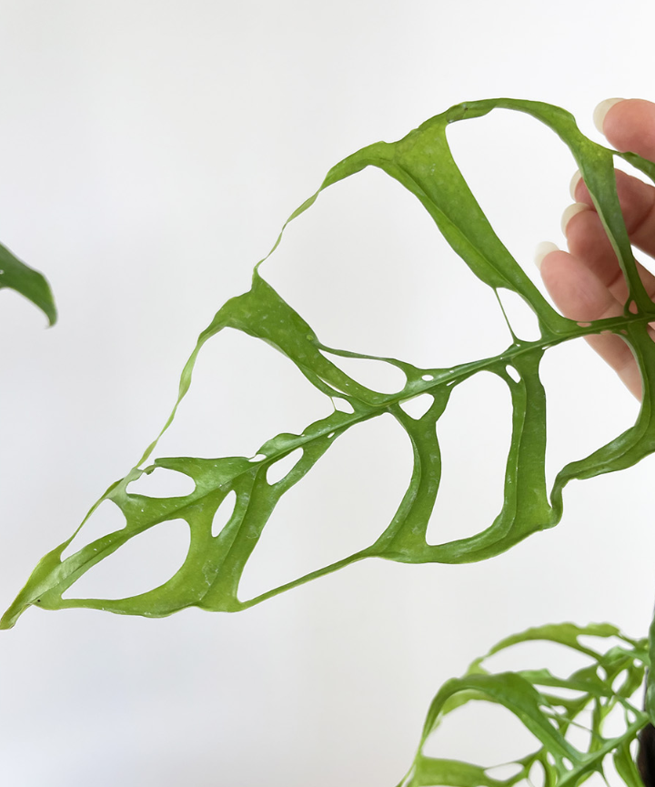 Follaje extremadamente delgado, con fenestraciones amplias y naturales que le dan una textura única.