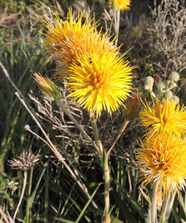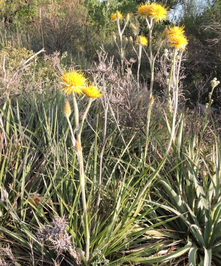 Herbácea perenne, endémica, que forma matas de hojas acintadas. En primavera exhibe sus bellas flores como soles dorados elevados sobre varas y en verano persiste su valor ornamental luciendo capítulos fructificados de color blanquecino. Esta planta se encuentra en la lista de especies prioritarias de conservación del Uruguay por lo que debemos valorizarla e incorporarla en nuestros espacios verdes, maceteros y jardines.