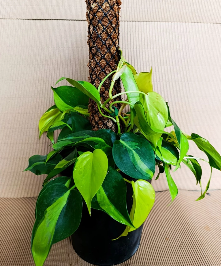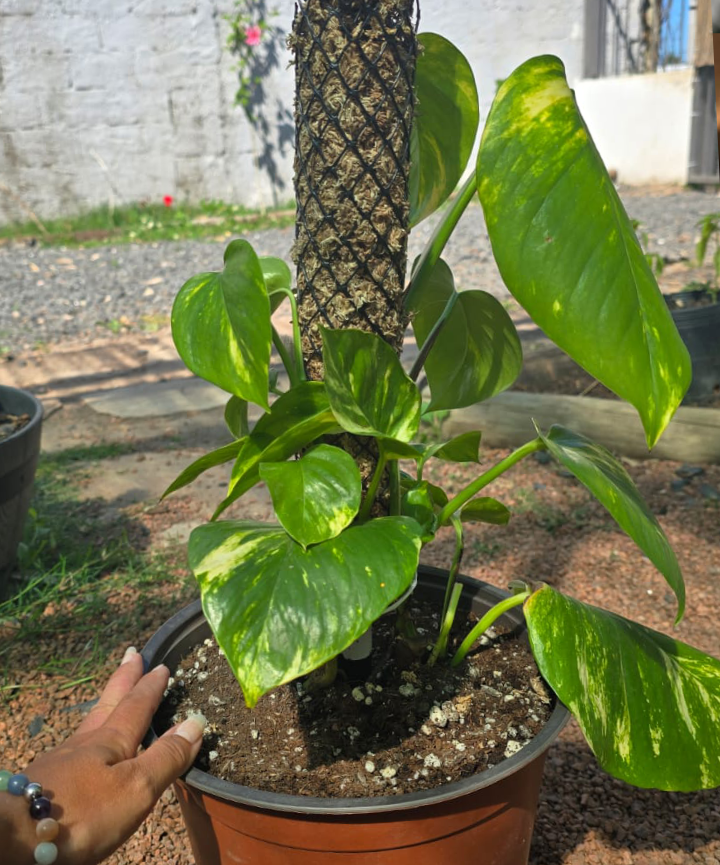 Rociá el tutor cada tanto: el musgo húmedo favorece el enraizado aéreo y acelera el crecimiento vertical.