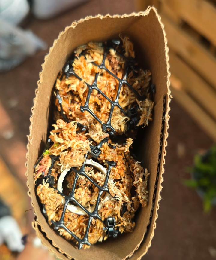 Tienen una estructura firme de PVC en el interior, musgo sphagnum natural en todo el cuerpo y una malla flexible que permite que las raíces aéreas se aferren con facilidad.